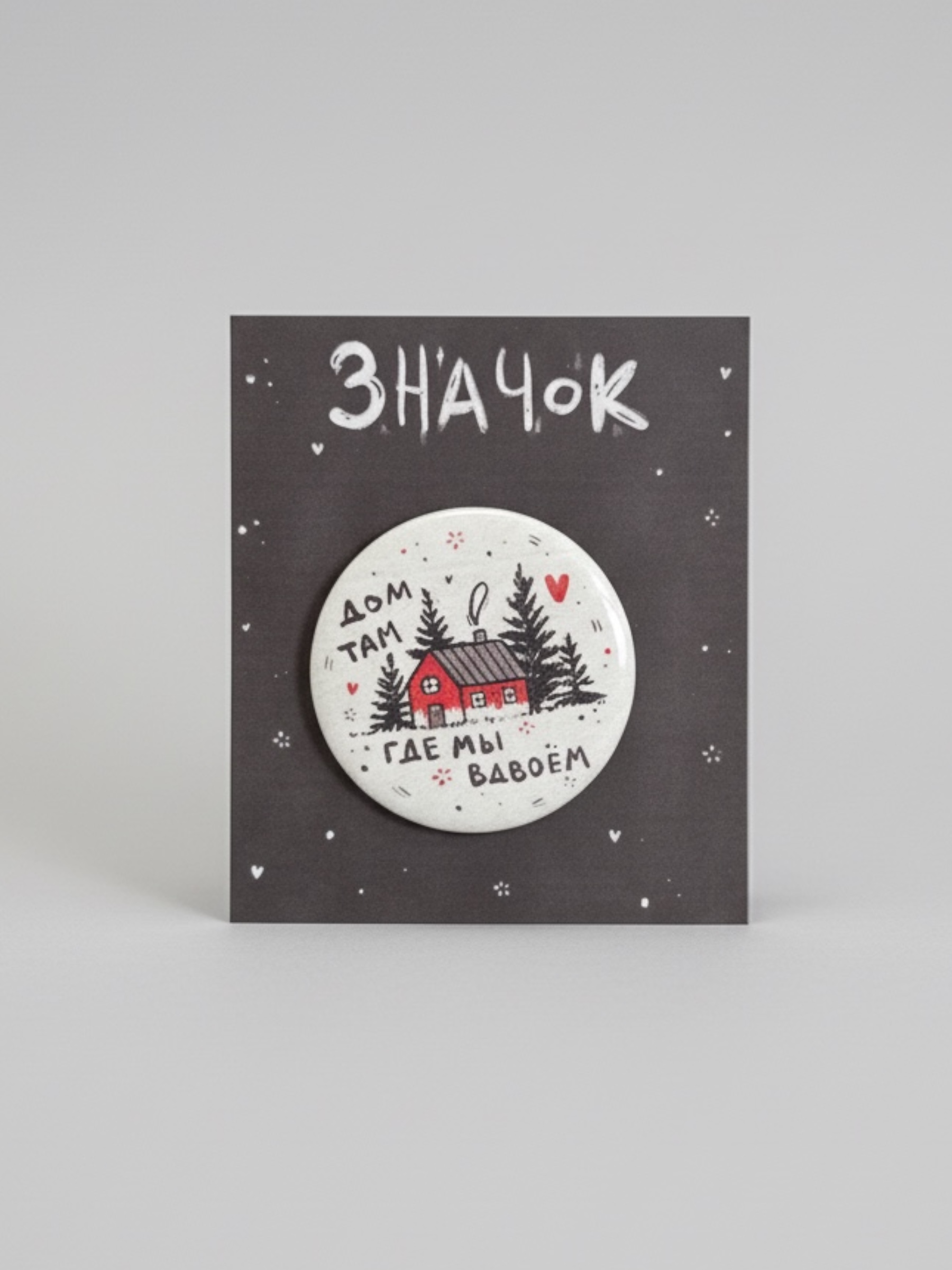 Закатной значок с надписью «Дом там, где мы вдвоем» от бренда Лемниската